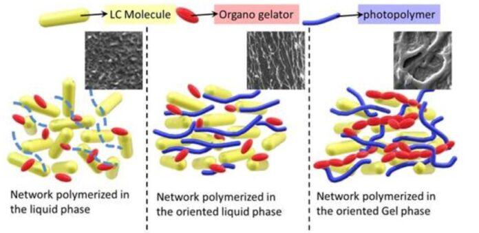 Traditional smart windows use liquid crystals to switch between transparent and opaque states. However, these windows can be expensive and energy-intensive to operate. The new protocol developed by the Indian researchers uses a two-step process to create a hierarchical network that confines the liquid crystals. The first step involves using light to create an orientationally self-assembled polymer network. The second step involves using temperature to induce organogelation, which creates a second network that traps the first one.